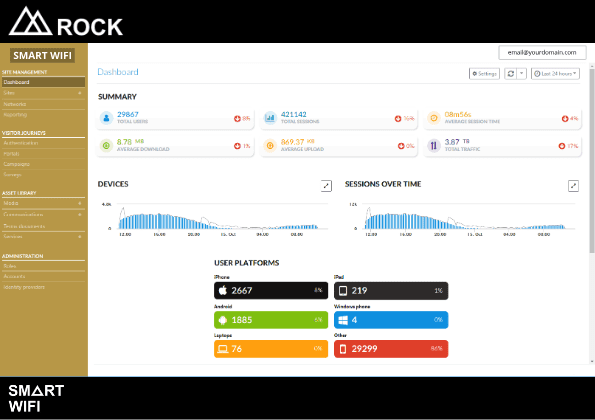 Manage your Hosted Networks, Hotspot settings, Campaigns, Media & Analytics all under one Control Panel via your Web Browser – Meaning you can access all of your settings on the go, even on a smartphone or tablet device.